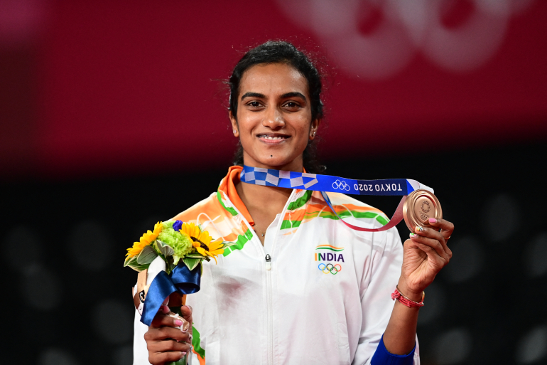 Sindhu won a bronze in the women’s singles competition in the Tokyo Olympics.